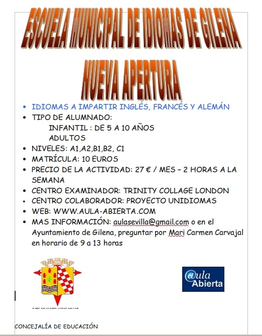ESCUELA MUNICIPAL DE IDIOMAS DE GILENA. NUEVA APERTURA.