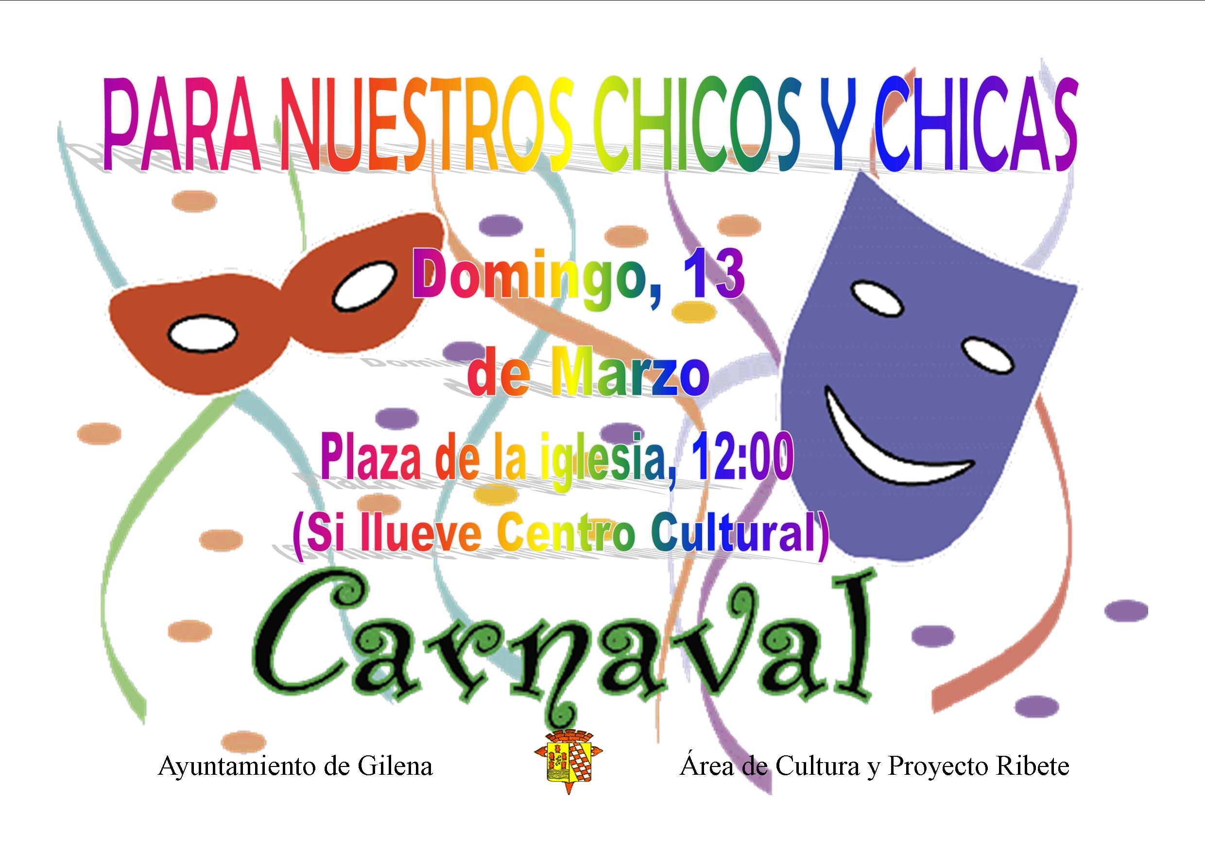 CARNAVAL PARA NIÑOS DOMINGO, DIA 13. Plaza de la Iglesia a las 12:00 (si llueve será en el Centro Cultural).