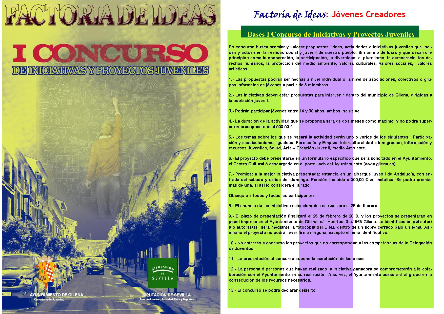I CONCURSO DE INICIATIVAS Y PROYECTOS JUVENILES. FACTORÍA DE IDEAS: JÓVENES CREADORES.
